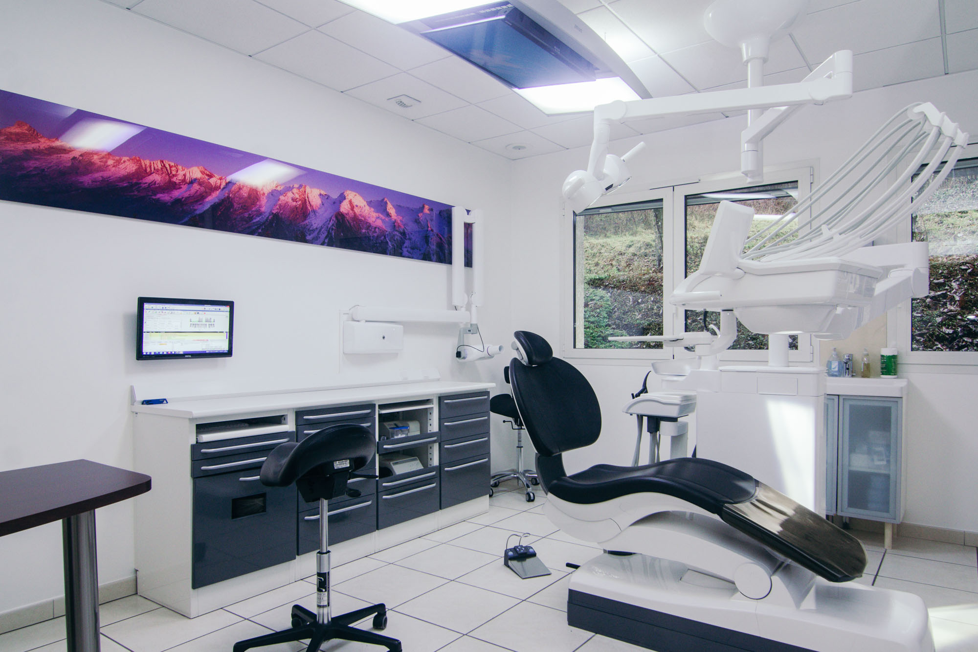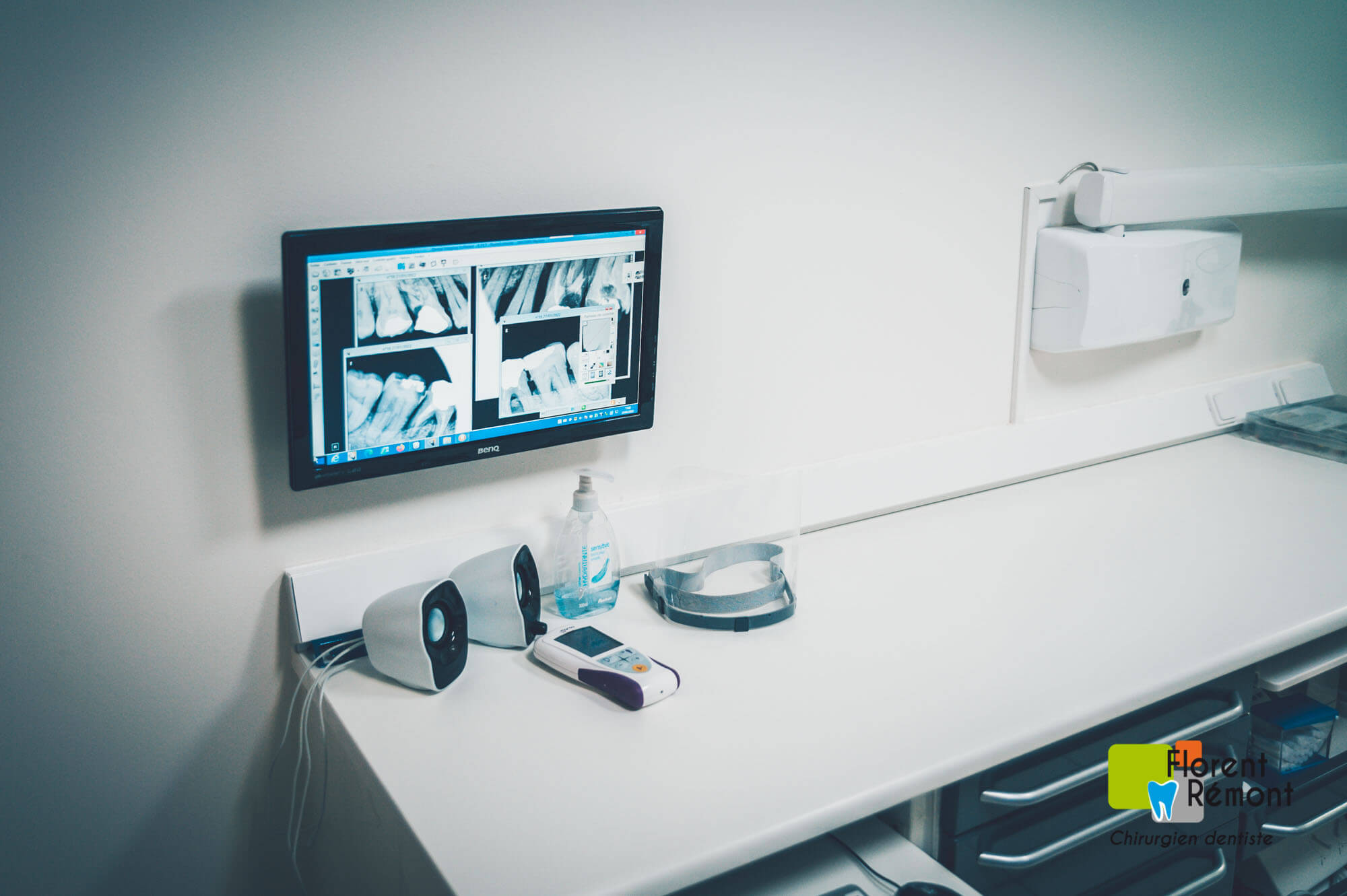 L’équipement radiologique du cabinet est entièrement numérique. Les doses d’irradiations sont nettement moindres par rapport aux techniques de radiographie argentique. Les salles de soins comprennent des tubes radiographiques pour les clichés intra-buccaux localisés. Un appareil de radiographie panoramique est également disponible au sein du cabinet.